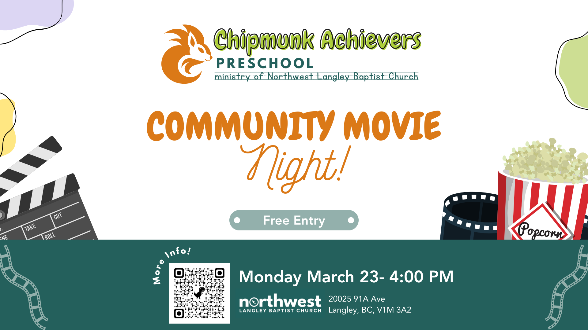Chipmunk Achievers is centrally located at Northwest Langley Baptist Church in Walnut Grove, at the corner of 200th and 91A Avenue (across from Colossus Movie Theatre).